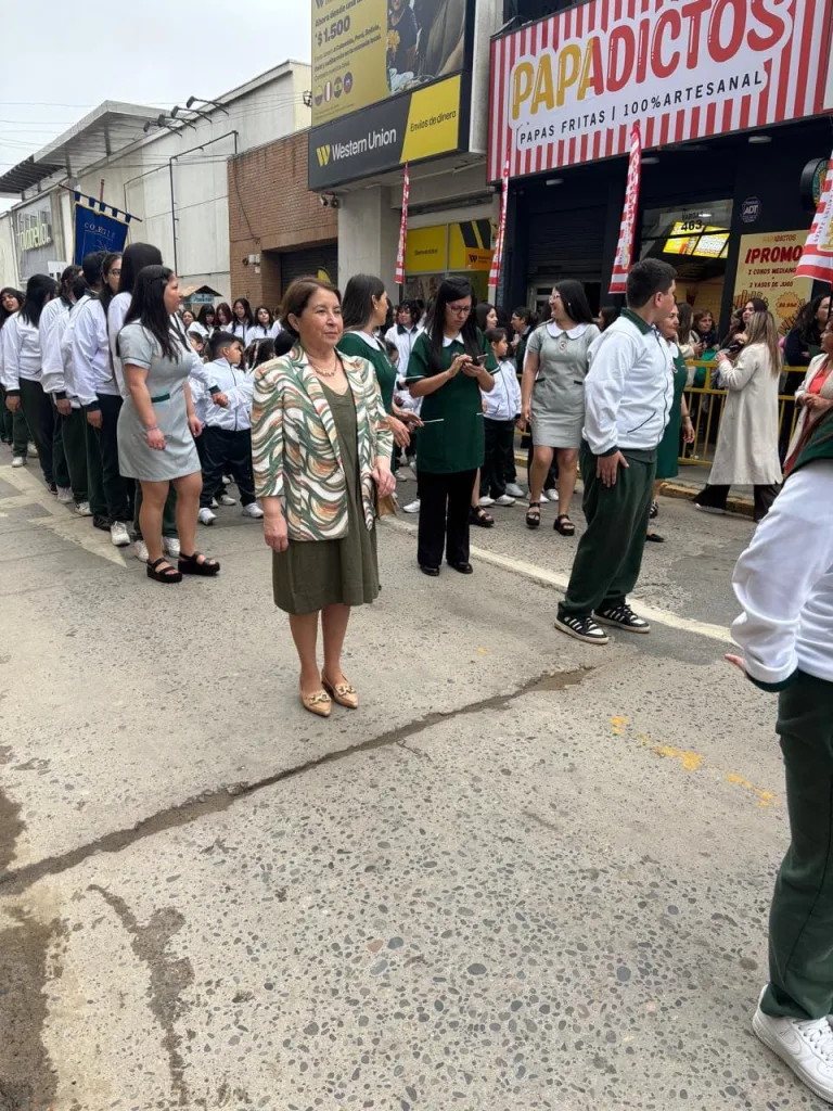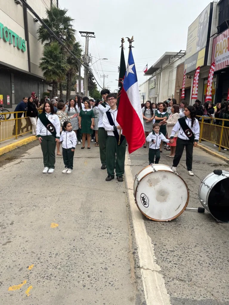 Junto a ellos, los estudiantes de cuarto medio 2025, próximos a egresar, demostraron su compromiso y orgullo por representar a su colegio en esta importante celebración. La delegación fue guiada y apoyada por las tías educadoras y asistentes de párvulos, quienes acompañaron a los estudiantes en esta emotiva y significativa jornada.